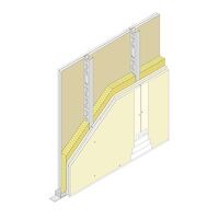 Partition made up of two Pladur® plasterboards screwed to each side of a galvanized steel structure, over Pladur® studs (vertical elements) and Pladur® channels (horizontal elements). Commensurate amounts of Pladur® materials: screws, compounds, joint tape, watertight/acoustic perimeter joints, etc., as well as anchors for floor and ceiling channels, etc. Completely finished with Quality Level 1 (Q1) for tile finishes, laminates, furring, etc. Also with Level 2 (Q2), Level 3 (Q3), Level 4 (Q4), according to the surface finish (to be determined by the design). Core of the Pladur® structure filled completely with mineral wool. Installed according to Pladur® recommendations, UNE 102043 Standard and CTE