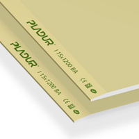 Laminated plasterboard consisting of a 100% natural gypsum core tightly bonded to two cellulose sheets. The board characteristics give it type I classification as per standard EN-520:2004 +A1 2009. This type of board is used in applications that require greater surface hardness. It is identifiable by its mustard-coloured front. It has a nominal thickness of 15 mm, with a nominal width of 1200 mm. The long edges of the board are cardboard-coated and tapered (BA).