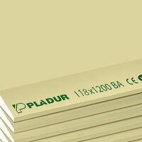 Laminated plasterboard consisting of a 100% natural gypsum core tightly bonded to two cellulose sheets. The board characteristics give it type I classification as per standard EN-520:2004 +A1 2009. This type of board is used in applications that require greater surface hardness. It is identifiable by its mustard-coloured front. It has a nominal thickness of 18 mm, with a nominal width of 1200 mm. The long edges of the board are cardboard-coated and tapered (BA).