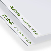 Laminated plasterboard consisting of a 100% natural gypsum core tightly bonded to two cellulose sheets. The board characteristics give it type A classification as per standard EN-520:2004 +A1 2009, i.e. it is a laminated plasterboard on which skim plastering using a suitable gypsum plaster or ornamental finish can be applied to its surfaces. It is identifiable by its light grey front. It has a nominal thickness of 13 mm, with a nominal width of 600 mm. The long edges of the board are cardboard-coated and tapered (BA).