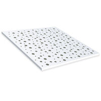 Laminated plasterboard for accessible ceilings consisting of a 100% natural gypsum core tightly bonded to two cellulose sheets. This board is perforated with random Ø 8, 15 and 20-mm round holes with a white finish. It has a nominal thickness of 13 mm and dimensions of 600 x 600 mm.