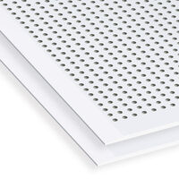 Laminated plasterboard for ceilings consisting of a 100% natural gypsum core tightly bonded to two cellulose sheets. The board is perforated with Ø 12-mm round holes every 25 mm. It has a total nominal thickness of 13 mm, a nominal width of 1200 mm and a nominal length of 2400 mm. The long edges of the board are cardboard-coated and tapered (BA).