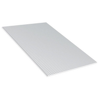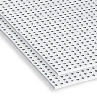Laminated plasterboard for ceilings consisting of a 100% natural gypsum core tightly bonded to two cellulose sheets. This board is perforated with random Ø 12, 20 and 35-mm round holes distributed evenly over the board. It has a total nominal thickness of 13 mm, a nominal width of 1200 mm and a nominal length of 2400 mm. The board has cut and bevelled short and long edges (VE).