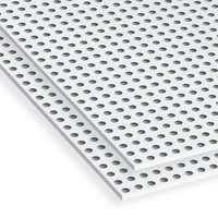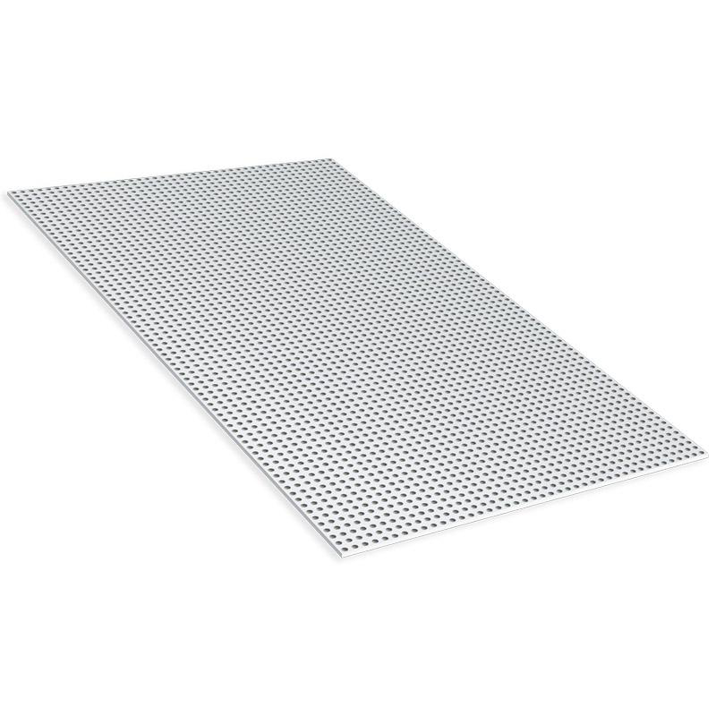 Laminated plasterboard for ceilings consisting of a 100% natural gypsum core tightly bonded to two cellulose sheets. This board is perforated with 6 x 25 mm obliquely arranged linear perforations on the visible side. The pattern is repeated at 10 cm intervals.. It has a total nominal thickness of 13 mm, a nominal width of 1200 mm and a nominal length of 2400 mm. The board has cut and bevelled short and long edges (VE).