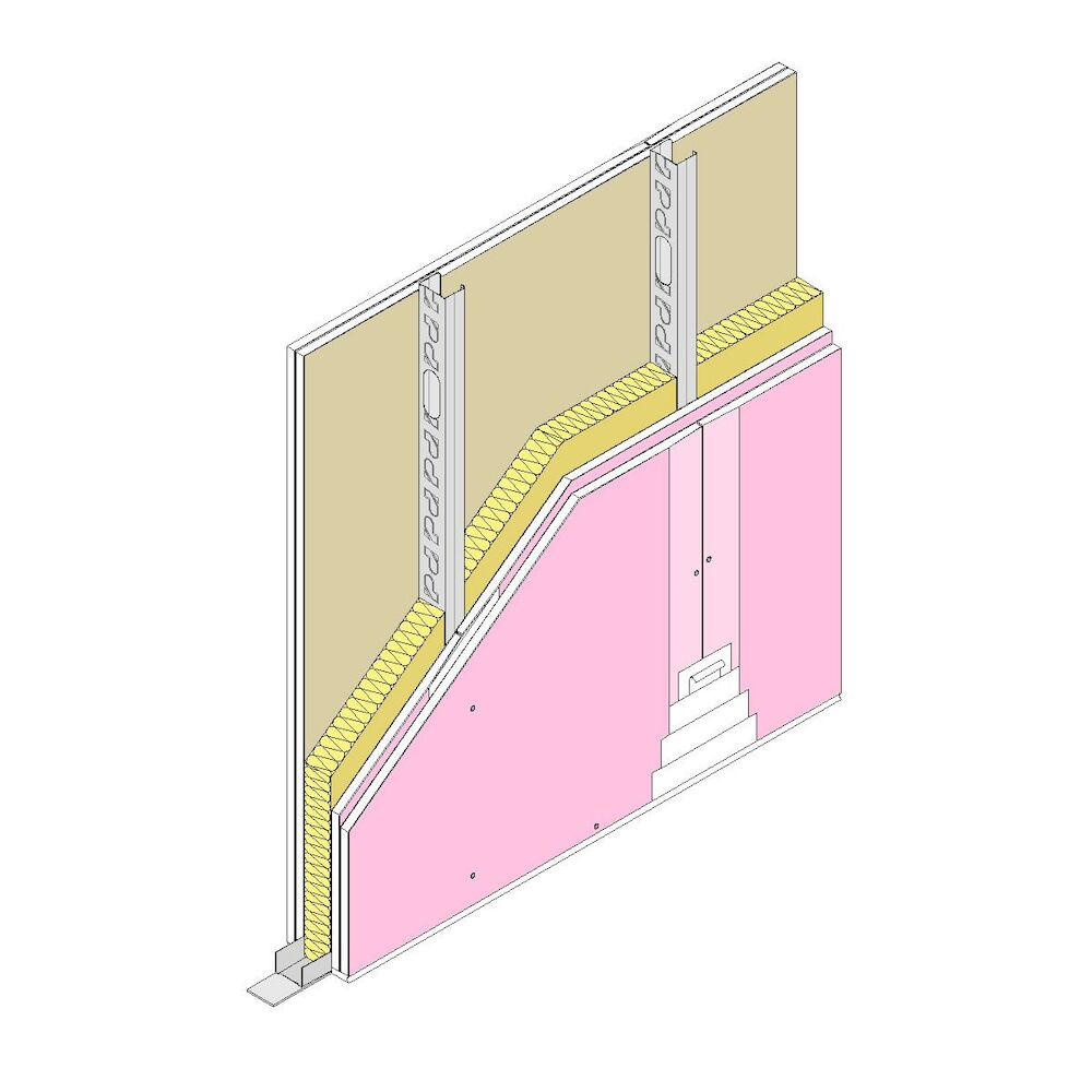 Partition made up of two Pladur® plasterboards screwed to each side of a galvanized steel structure, over Pladur® studs (vertical elements) and Pladur® channels (horizontal elements). Commensurate amounts of Pladur® materials: screws, compounds, joint tape, watertight/acoustic perimeter joints, etc., as well as anchors for floor and ceiling channels, etc. Completely finished with Quality Level 1 (Q1) for tile finishes, laminates, furring, etc. Also with Level 2 (Q2), Level 3 (Q3), Level 4 (Q4), according to the surface finish (to be determined by the design). Core of the Pladur® structure filled completely with mineral wool. Installed according to Pladur® recommendations, UNE 102043 Standard and CTE