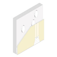 Direct bond lining made up of a Pladur® panel attached directly to a support wall with dollops of bonding compounds Pladur® (PA) placed every 400 mm in both directions. Commensurate amounts of Pladur® materials: joint compounds, bonding compound, joint tape, etc. Completely finished with Quality Level 1 (Q1) for tile finishes, laminates, furring, etc. Also with Level 2 (Q2), Level 3 (Q3) or Level 4 (Q4), according to the surface finish (to be determined by the design). Installed according to Pladur® recommendations, UNE 102043 Standard and CTE requirements.