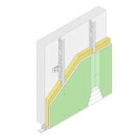 Independent lining made up of a structure of galvanised sheet steel profiles over Pladur® studs and Pladur® channels (horizontal elements), on whose interior side, depending on the height to be covered, the studs must be braced with brackets that attach to the core of the studs and the support wall, leaving a minimum space between the structure and the wall of 10 mm. On the exterior side of this structure one or more Pladur® plasterboards are screwed on. Commensurate amounts of Pladur® materials: screws, compounds, joint tape, watertight/acoustic perimeter joints, etc., as well as anchors for channels on the floor and ceiling, etc. Completely finished with Quality Level 1 (Q1) for tile finishes, laminates, furring, etc. Also with Level 2 (Q2), Level 3 (Q3), Level 4 (Q4), according to the surface finish (to be determined by the design). Core of the Pladur® structure filled completely with mineral wool. Installed according to Pladur® recommendations, UNE 102043 Standard and CTE requirements.