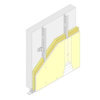 Independent lining made up of a structure of galvanized sheet steel profiles over Pladur® studs and Pladur® channels (horizontal elements), on whose interior side, depending on the height to be covered, the studs must be braced with brackets that attach to the core of the studs and the support wall, leaving a minimum space between the structure and the wall of 10 mm. On the exterior side of this structure one or more Pladur® plasterboards are screwed on. Commensurate amounts of Pladur® materials: screws, compounds, joint tape, watertight/acoustic perimeter joints, etc., as well as anchors for channels on the floor and ceiling, etc. Completely finished with Quality Level 1 (Q1) for tile finishes, laminates, furring, etc. Also with Level 2 (Q2), Level 3 (Q3), Level 4 (Q4), according to the surface finish (to be determined by the design). Core of the Pladur® structure filled completely with mineral wool. Installed according to Pladur® recommendations, UNE 102043 Standard and CTE requirements.